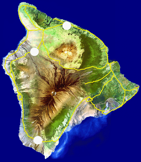 The Big Island of Hawaii has many dive sites. Click a dive flag on the map to learn about a simple few... We can't give away all our secrets! |